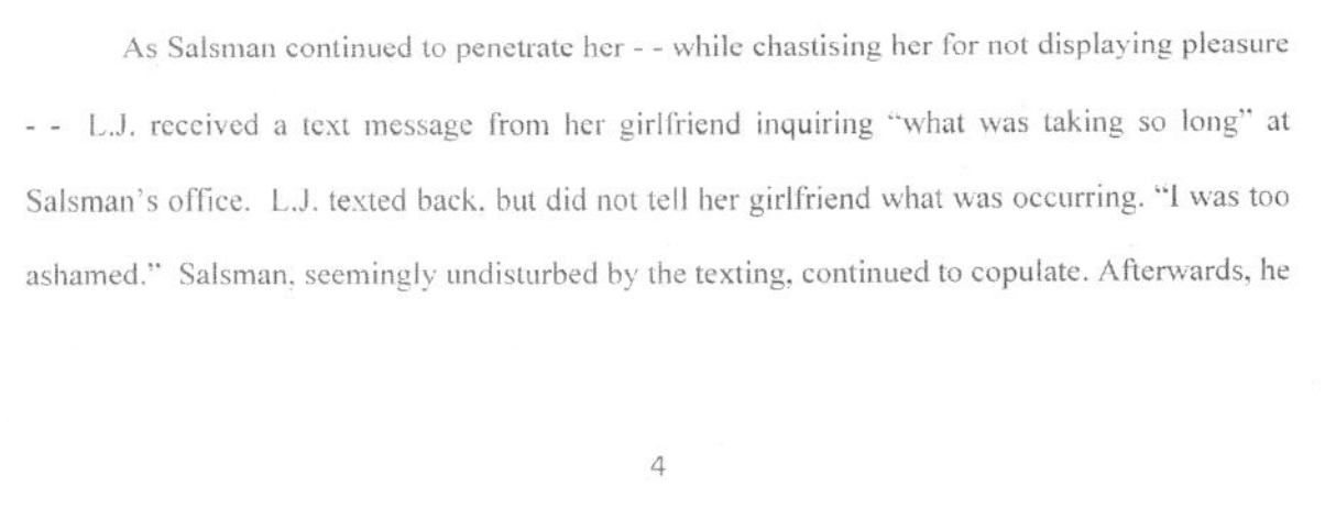 But once Chad M. Salsman had guided the women into his private law office, ostensibly to discuss their cases, he forced them onto his desk and sexually assaulted them, prosecutors said. He then told the women not to tell anyone what had happened.